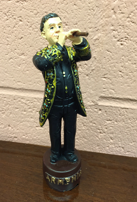 Press the button and Armenian duduk music starts to play. Batteries included.