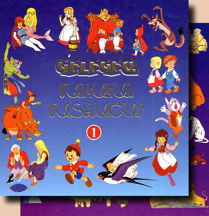 Volumes one and two of the Kilikia Mankakan Matenashar containing popular international folk tales. Both volumes contain 12 tales each. The books are gold-leafed on the edges, giving them a magical feel.