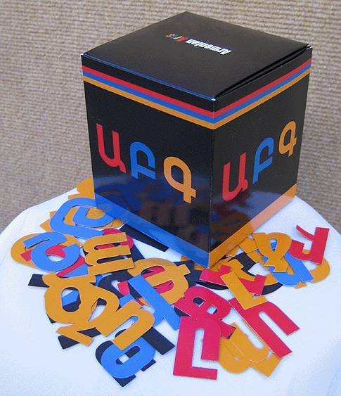 Over 300 magnetic letters of the Armenian aphabet suitable for creating words and sentences.